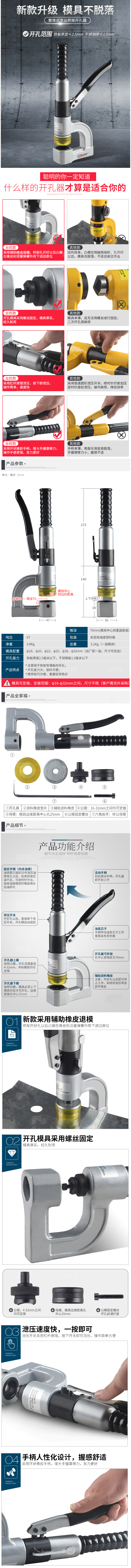 ·主要用于桥架等薄板的开孔 ·开孔能力大,退料方便·携带轻巧方便,重量轻