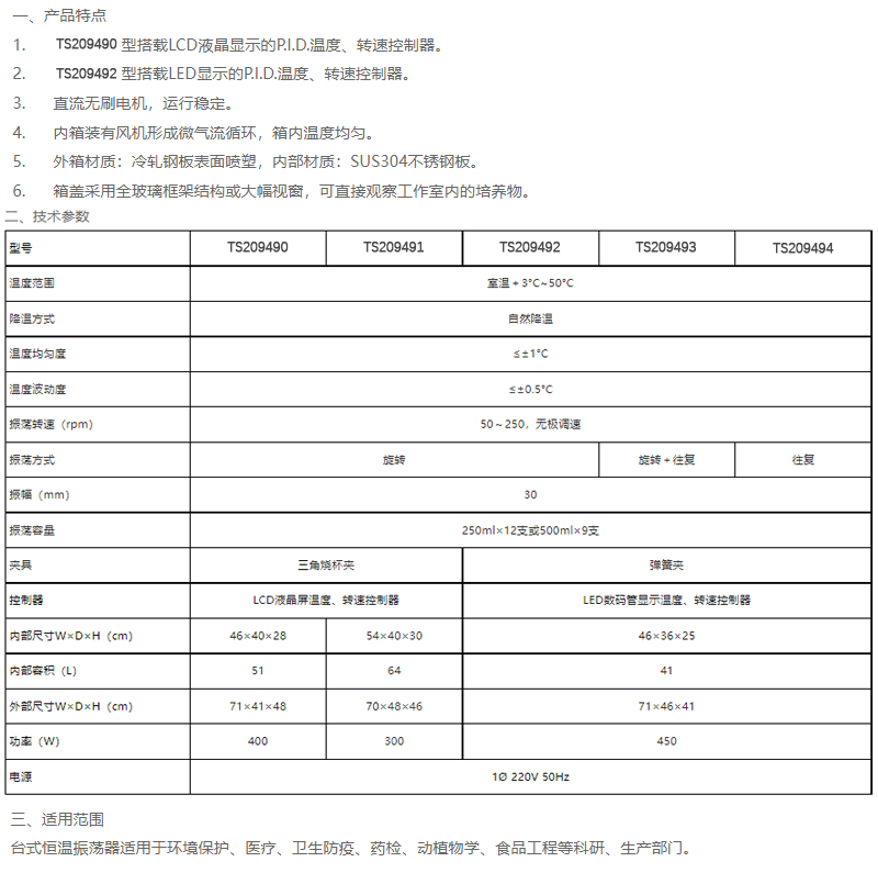 温度范围室温+3~50℃内部容积60L