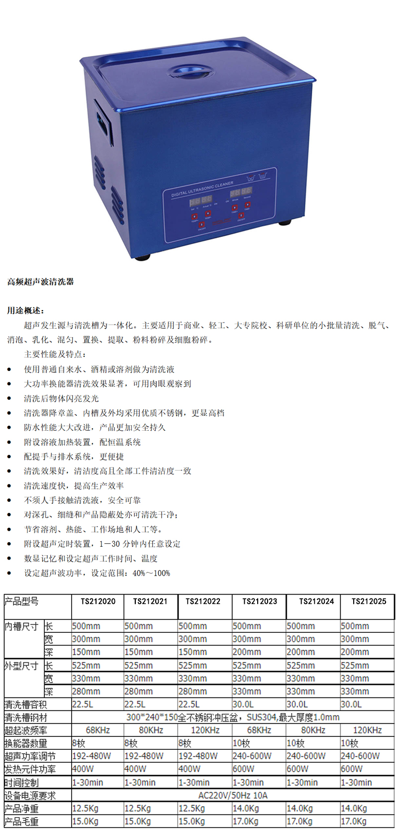 ·兼顾了各种频率超声波清洗器的特点、无论是用于清洗,还是混合(溶解、乳化、掺杂)、脱气、脱泡、提取、促进化学反应等效果俱佳。