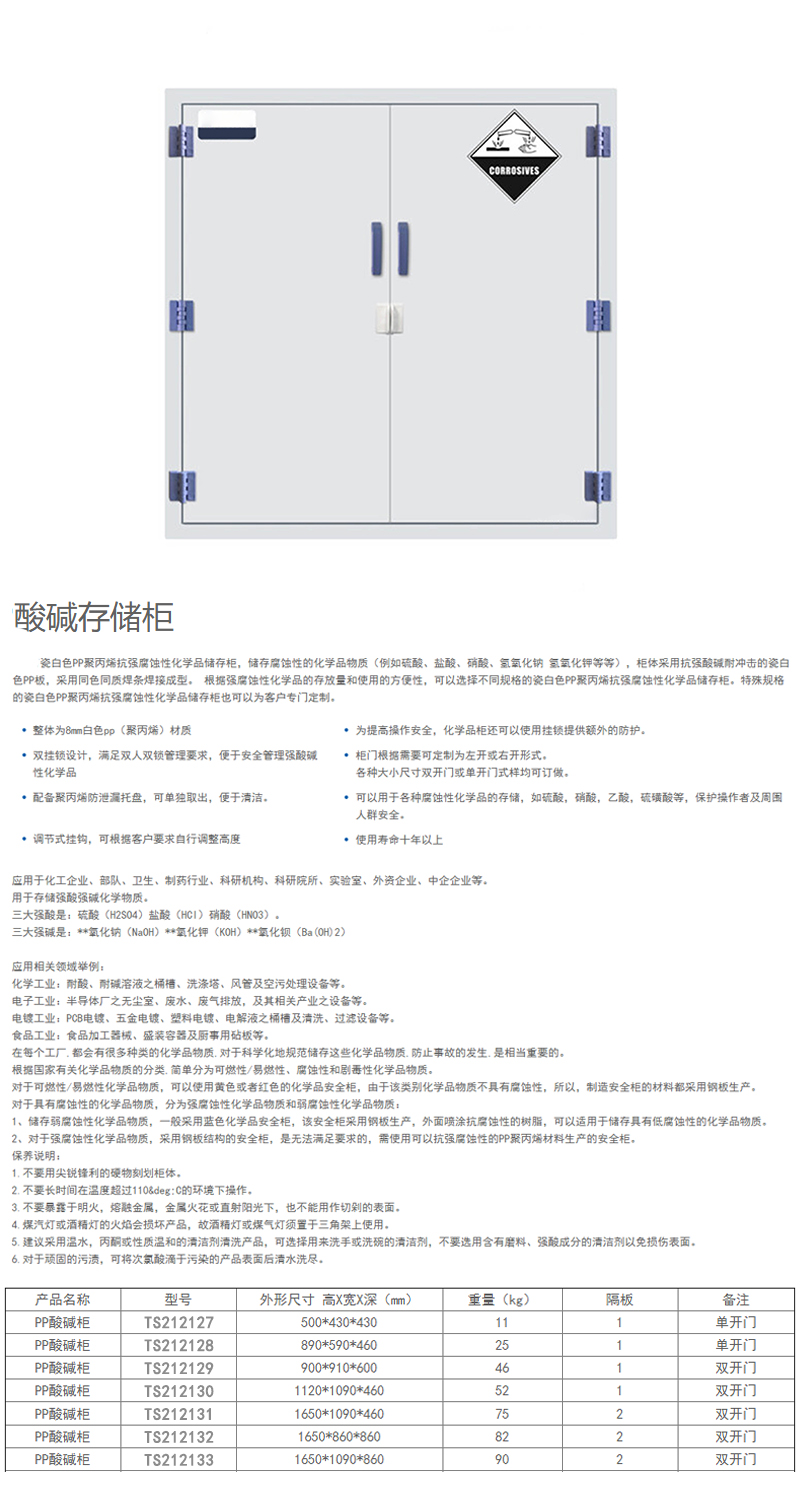 ·可调节层板,耐腐蚀,弱酸强碱存储柜