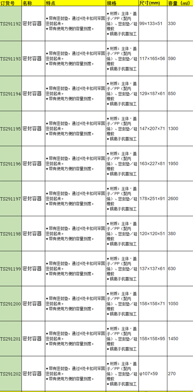 主体・盖子/PP(聚丙烯)、密封垫/硅橡胶