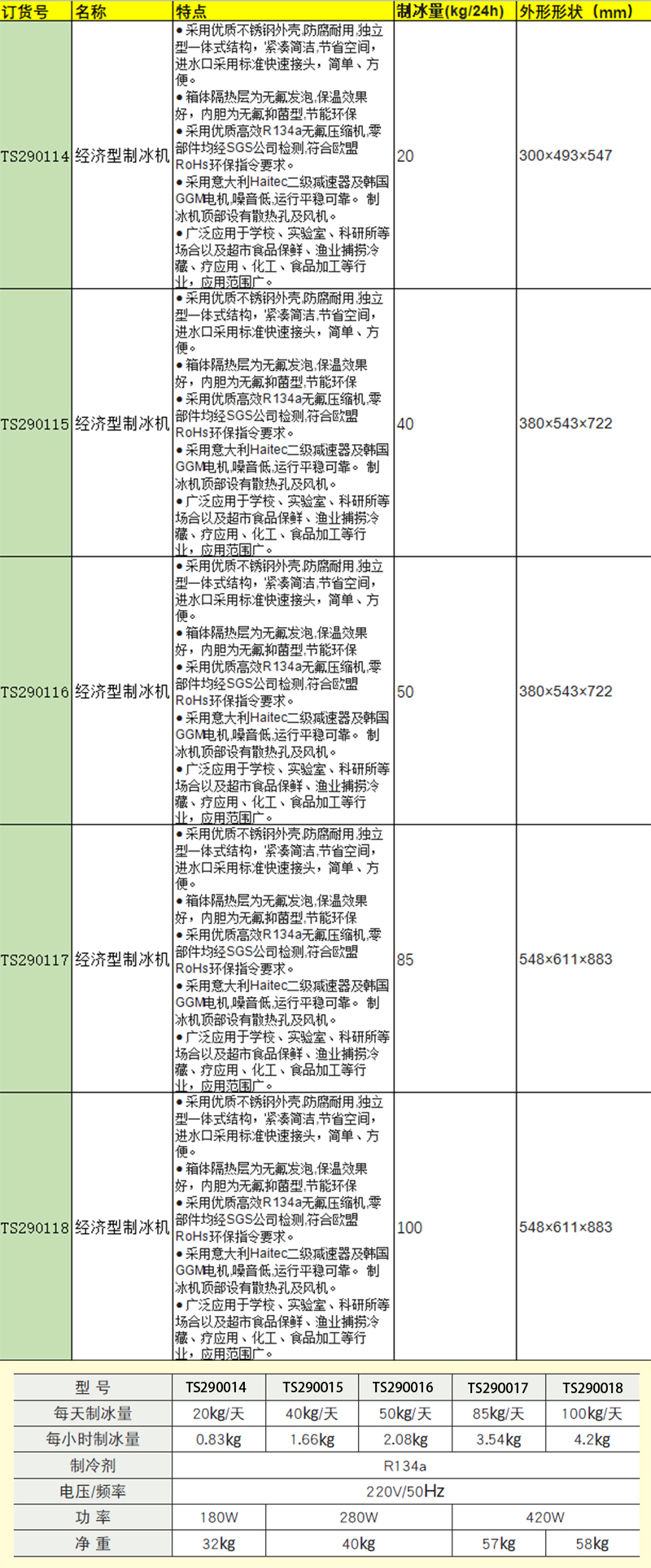 H65621 TS290118 100kg/24h 90kg 4.2kg R134a 220V/50Hz 420W 548×611×883mm 20880.00