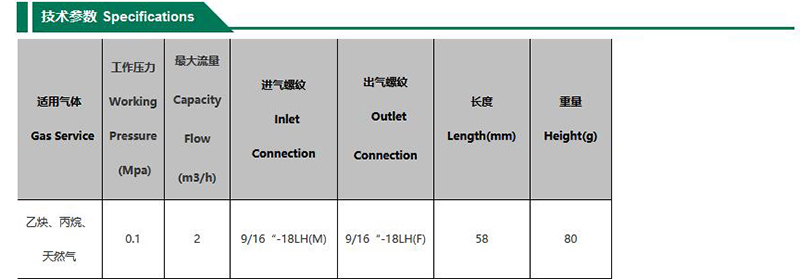 ·微孔散热型火焰熄灭装置确保火焰熄灭 ·气体单向阀在回火过程中自动将气源瞬间切断 ·具有自动复位功能,可连续作业 ·直接连接在气体焊割炬的进气口上使用