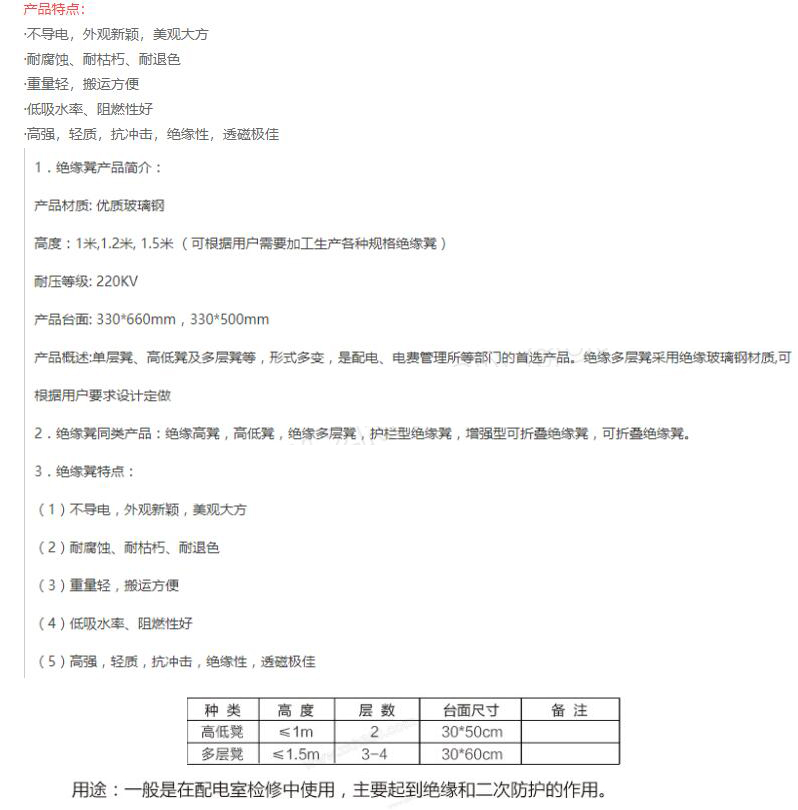 ·不导电,外观新颖,美观大方 ·耐腐蚀、耐枯朽、耐退色 ·重量轻,搬运方便 ·低吸水率、阻燃性好 ·高强,轻质,抗冲击,绝缘性,透磁极佳