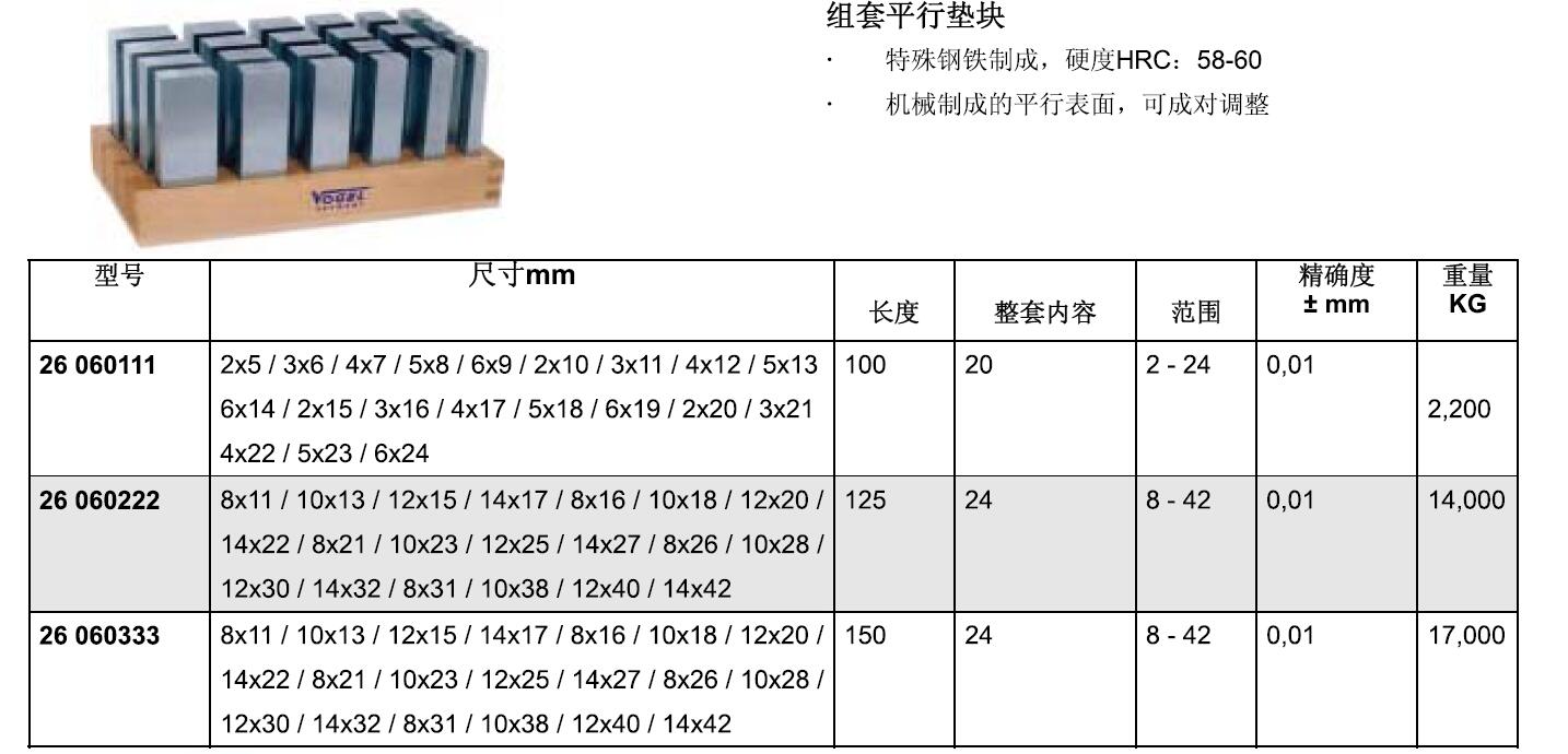 ·特殊钢铁制成,硬度HRC:58-60 ·机械制成的平行表面,可成对调整