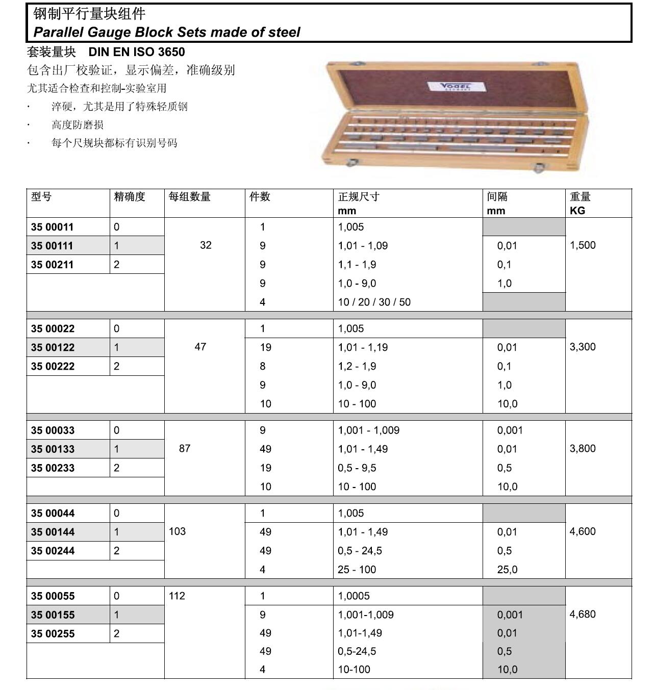 订货号 制造商型号 总块数 级别 标称长度系列 间隔 精确度 件数 正规尺寸 重量 价格 购物车