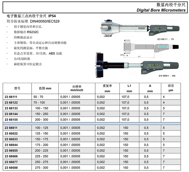 订货号 制造商型号 测量范围 分度值 精度 分辨率 重复率 L1 A 误差 价格 购物车