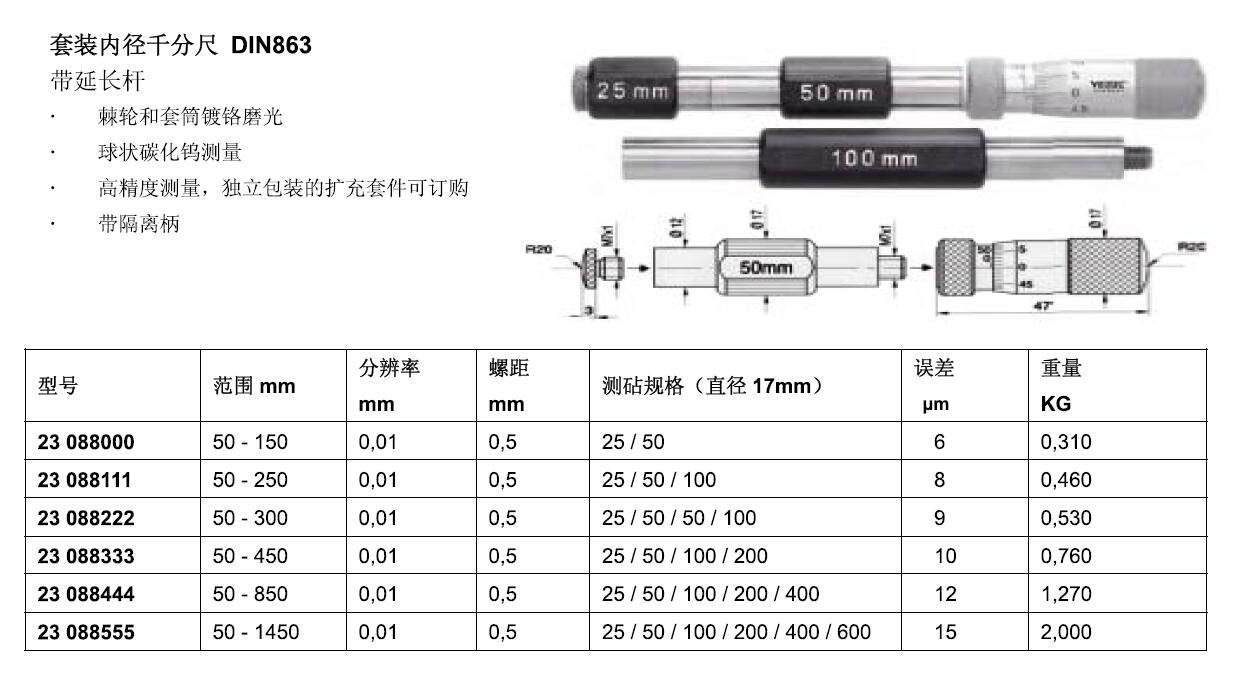 ·棘轮和套筒锁铭磨光 ·球状碳化鸽测量 ·高精度测晕. 独立包装的扩充套件可订购带隔离柄