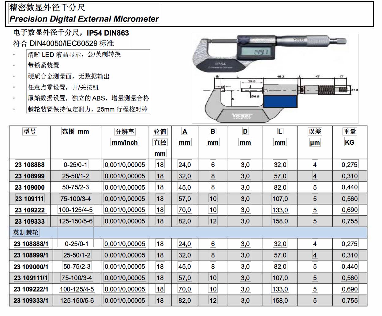 B10043 23 108888 0-25/0-1" 0.001 0.00005'' 4μm 1469.39