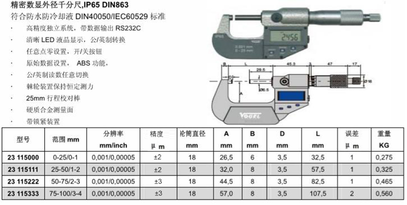 订货号 制造商型号 测量范围 分度值 精度 A B D L 价格 购物车