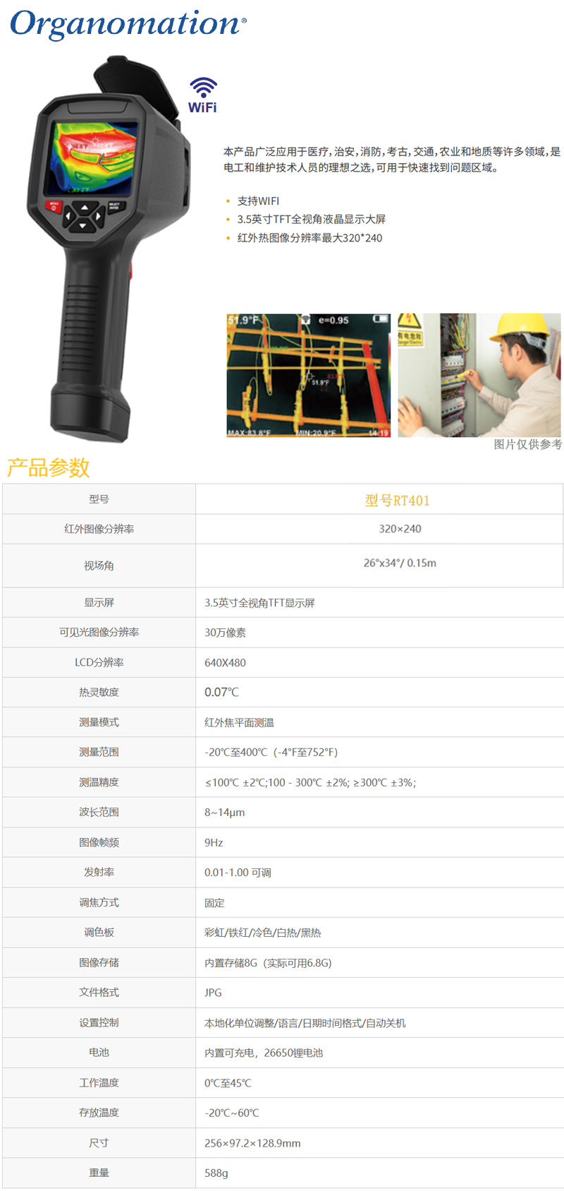 ·支持WIFI ·3.5英寸TFT全视角液晶显示大屏 ·红外热图像分辨率最大320×240