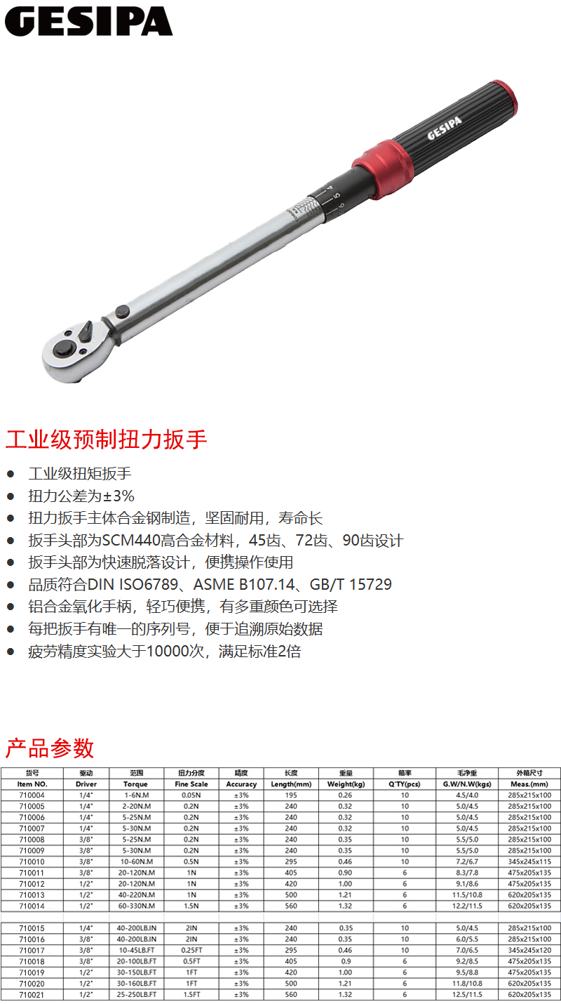 ·品质符合DIN IS06789、ASME B107.14、GB/T15729