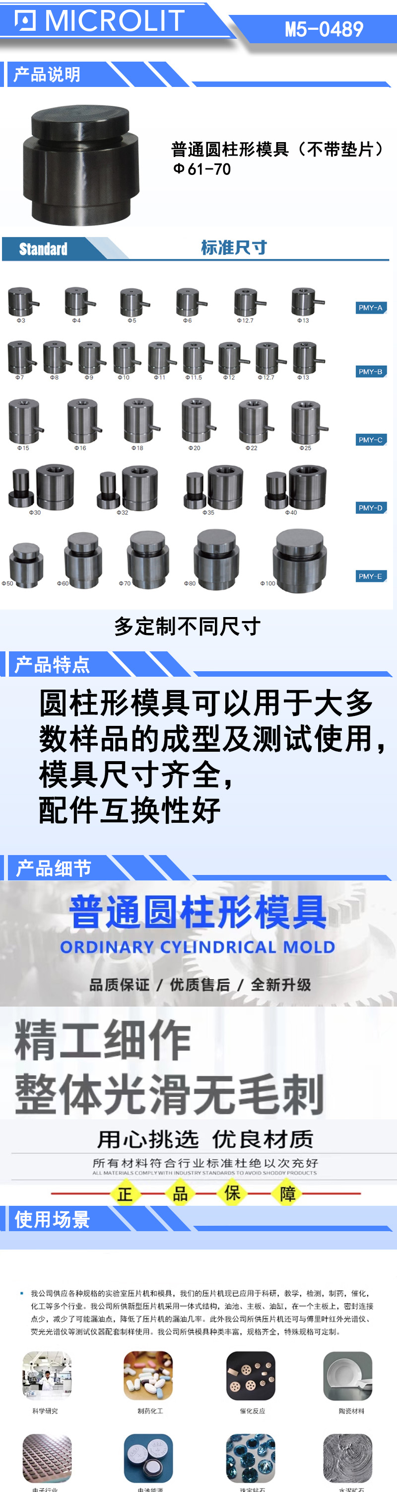 *长方形模具适合一些易成型的细长条样品,也可以根据用户需要定做各种特殊尺寸