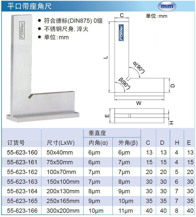 ·符合德标DIN875 0级 ·不锈钢尺身,淬火 ·单位:mm