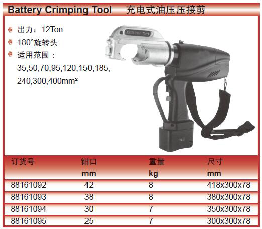 ·出力:12Ton ·180°旋转头 ·适用范围:35,50,70,95,120,150,185,240,300,400mm²