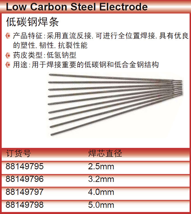 ·采用直流反接,可进行全位置焊接,具有优良的塑性,韧性,抗裂性能 ·药皮类型:低氢钠型