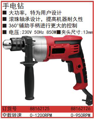 ·大功率,特为用户设计 ·滚珠轴承设计,提高机器耐久性 ·360°辅助手柄进行更大的控制 ·电压:230V50Hz850W ·夹头尺寸:13mm