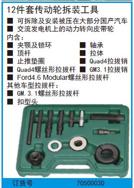 规格:  12件套传动轮拆装工具 制造商型号:  70500030