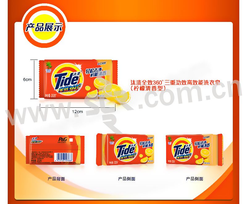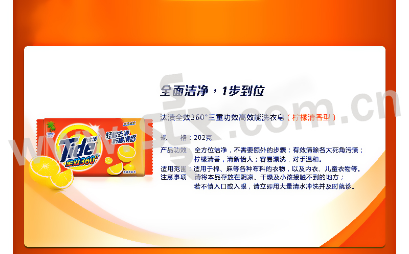 TIDE/汰渍 全效360度三重功效洗衣皂 6903148157688 202g 柠檬清新 1块