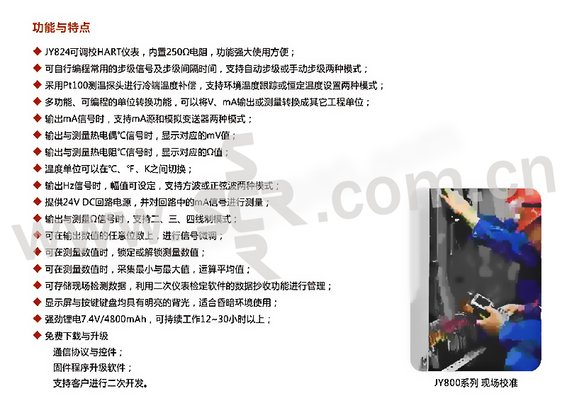 ·多功能,多编程的单位转换功能,可以将V,mA输出或测量转换成其他工程单位