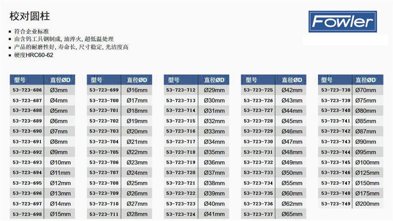 ·由含钨工具钢制成,油淬火,超低温处理 ·产品的耐磨性好,寿命长,尺寸稳定,光洁度高 ·硬度HRC60-62 ·标准ASMEB89.1.5
