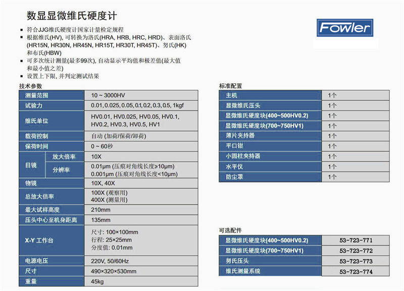 ·根据维氏(HV),可转换为洛氏(HRA,HRB,HRC,HRD)、表面洛式(HR15N,HR30N,HR45N,HR15T,HR30T,HR45T)、努氏(HK)和布氏(HBW);可多次统计测量(最多99次),自动显示平均值和级值(最大值和最小值之差);设置上下限,并判定测试结果;可进行努氏硬度测量,需另购努氏压头