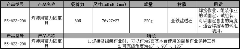 ·1.焊接及组装作业时,可以作为2面基本台使用的简易作业保持工具 ·2.可完成角度为45°、90°、135°