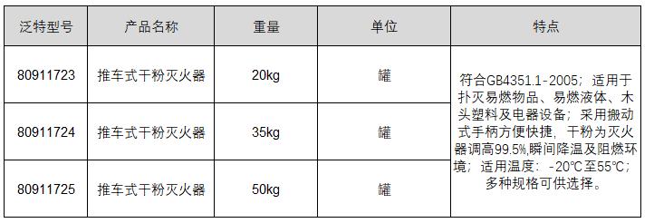 ·符合GB4351.1-2005;适用于扑灭易燃物品、易燃液体、木头塑料及电器设备;                                              ·采用搬动式手柄方便快捷,干粉为灭火器调高99.5%,瞬间降温及阻燃环境;                                                      ·适用温度:-20℃至55℃;多种规格可供选择。