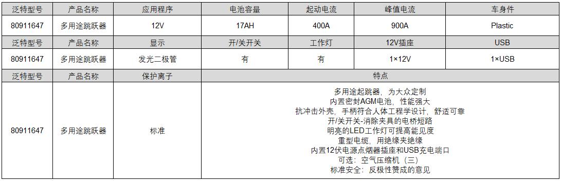 A32335 80911646 12V 17AH 400A 900A Plastic 发光二极管 3模式灯 1×12V 1×USB 标准 1914.00