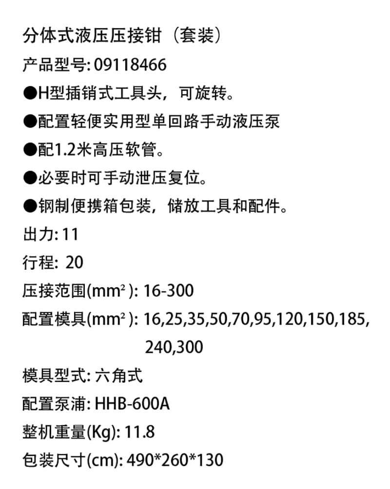 分体式液压压接钳套装