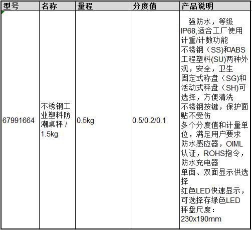 订货号 制造商型号 量程 显示分度值 功能 秤盘尺寸 秤面材质 价格 购物车