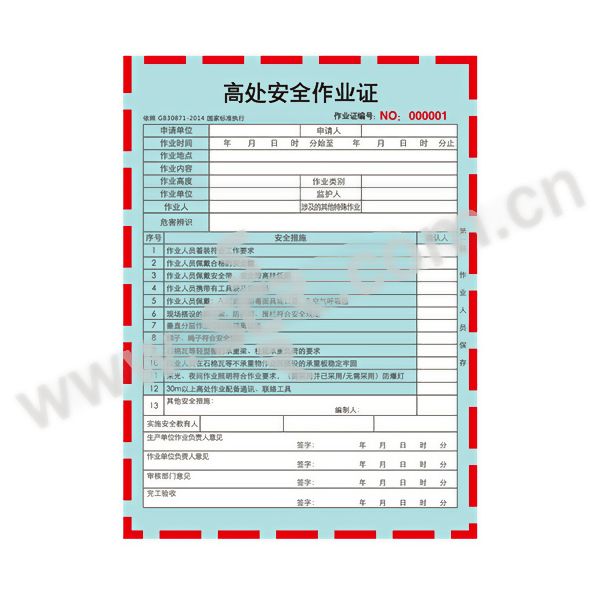 SAFEWARE/安赛瑞 安全作业许可单(高处
