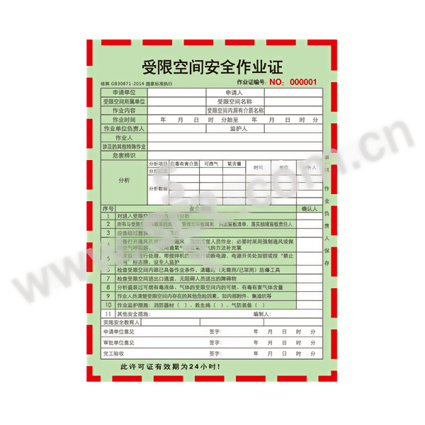 SAFEWARE/安赛瑞 安全作业许可单(临时