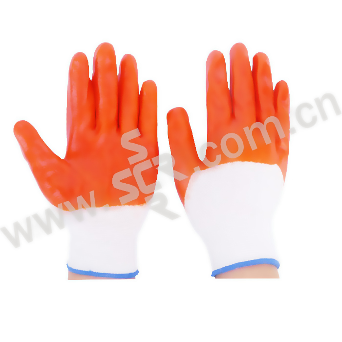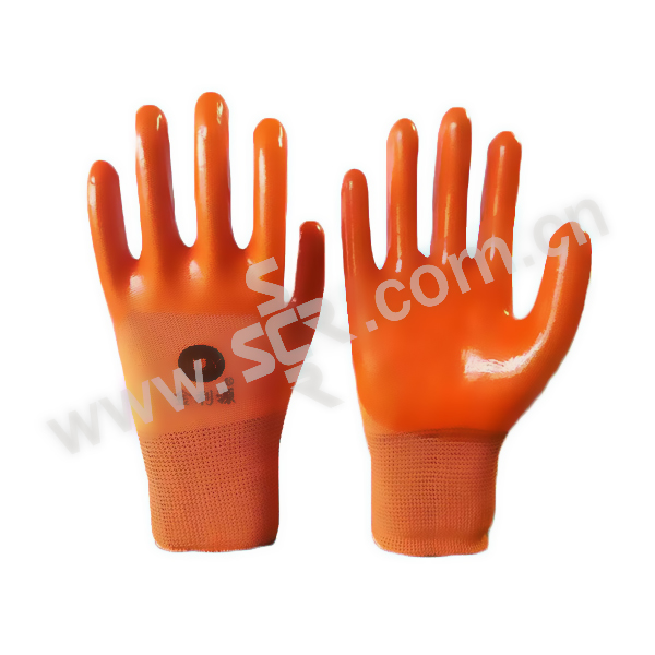 F/福安特劳 PVC挂胶手套 橘色掌浸 均码