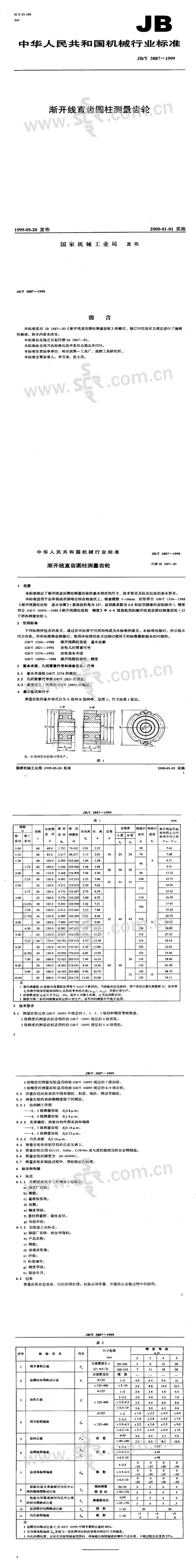 JB∕T 3887-1999渐开线直齿圆柱测量齿轮