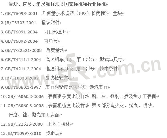 量块、直尺、角尺和样块类国家标准和行业标准
