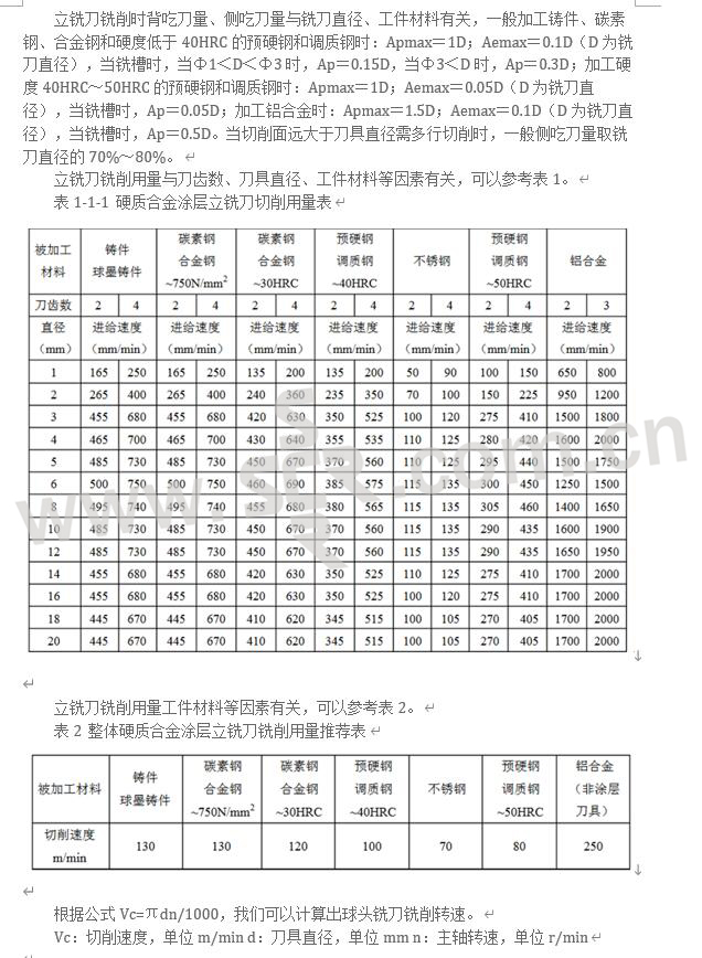 硬质合金涂层立铣刀切削用量