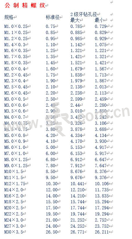 公制精螺纹 > 公制精螺纹