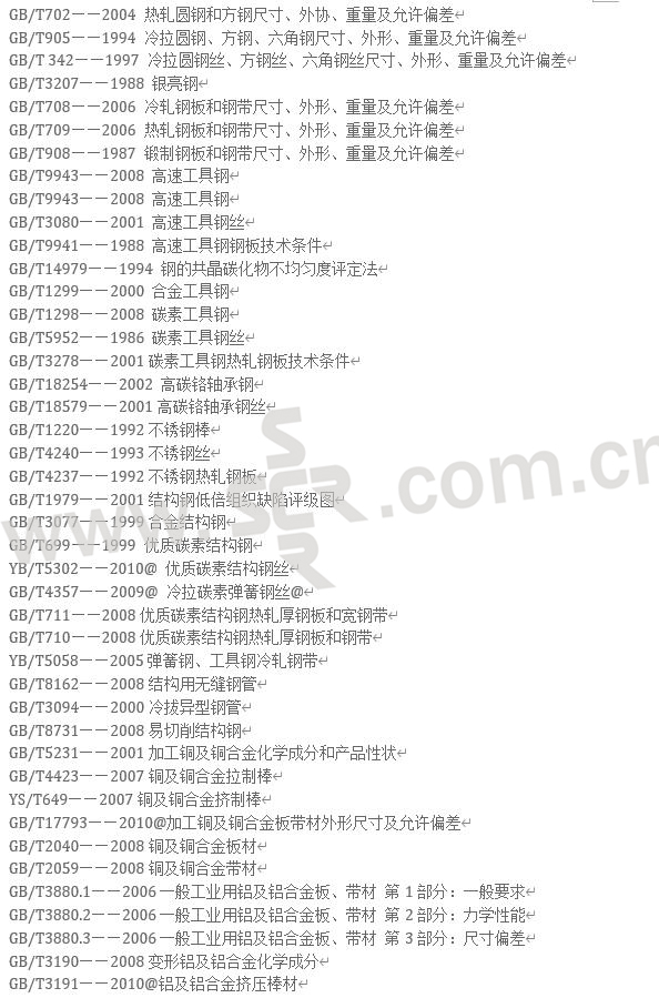常用金属材料技术标准